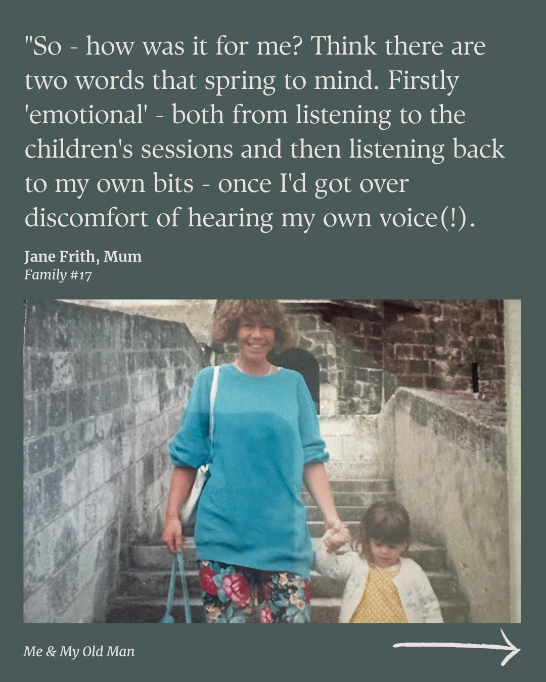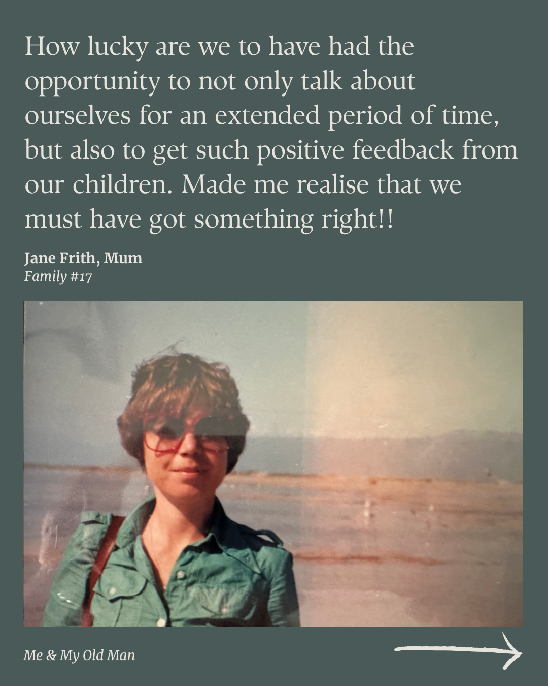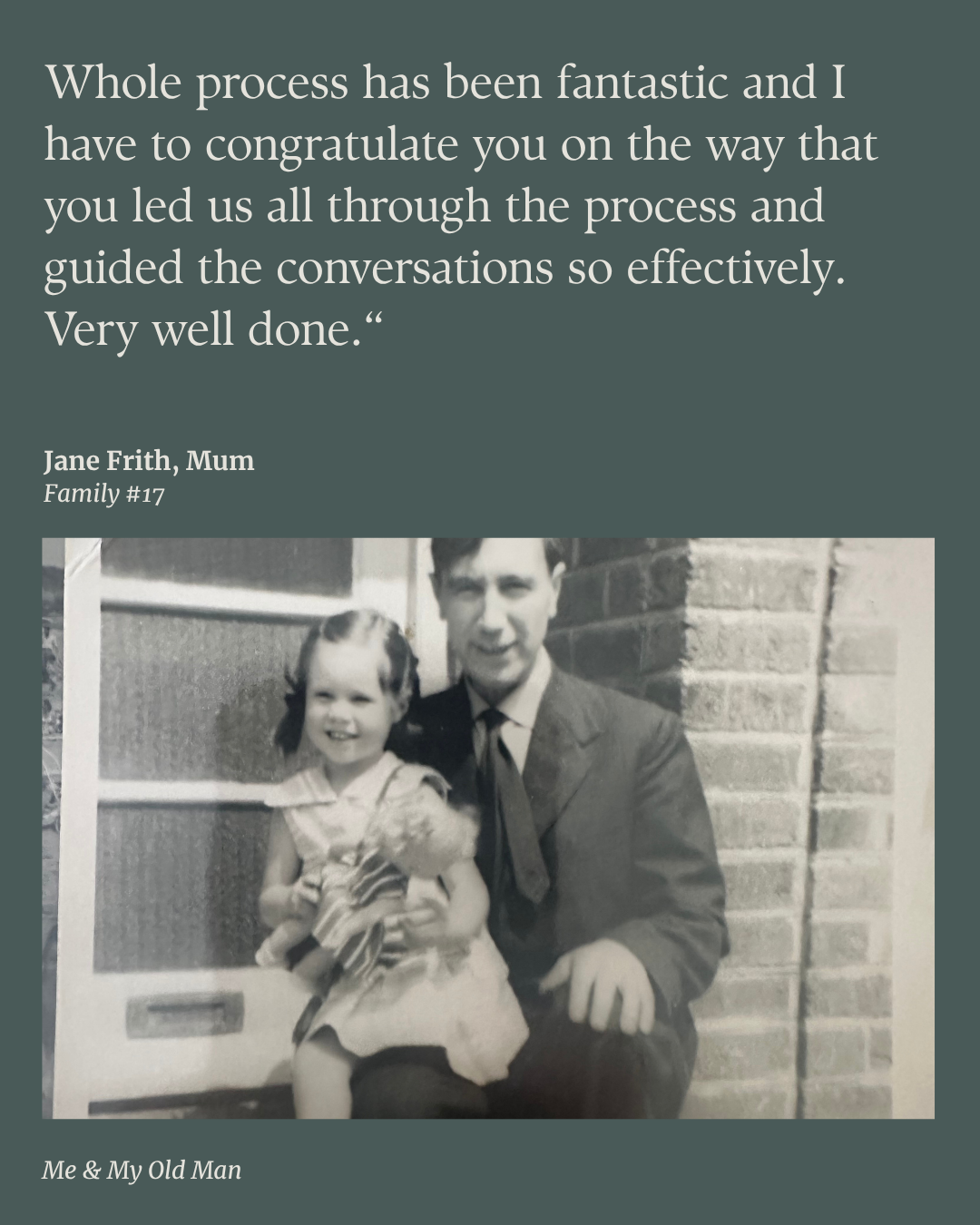 Then three deep sessions where your parent(s) share their journey — insights, turning points, the bits that shaped who they are.